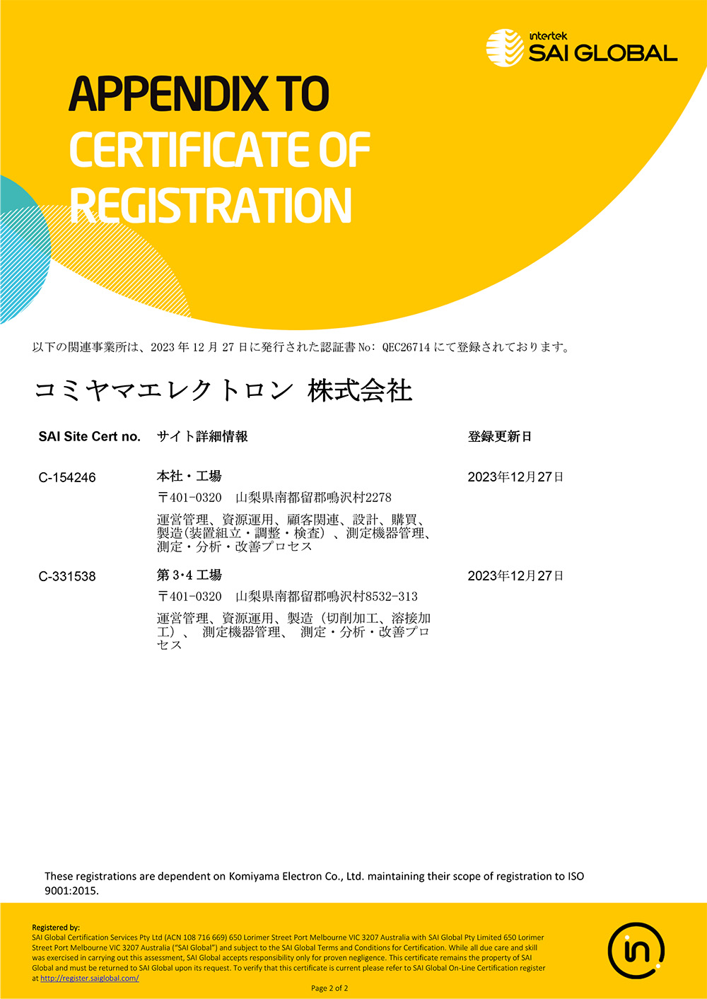 コミヤマエレクトロン株式会社は顧客に満足いただける製品とサービスを継続的に改善し、ものづくりの「品質文化」を向上させます。